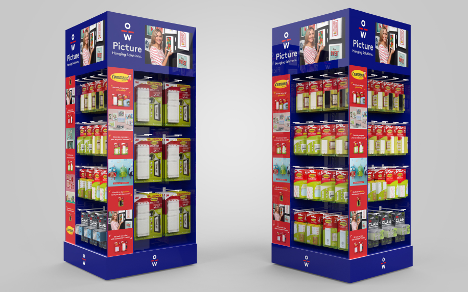 This brand knew that an important factor in the success of their Command™ range of hooks and tapes was to maximise in store placement by securing additional stock that was visible & located in areas that would compliment its existing shelf space.
