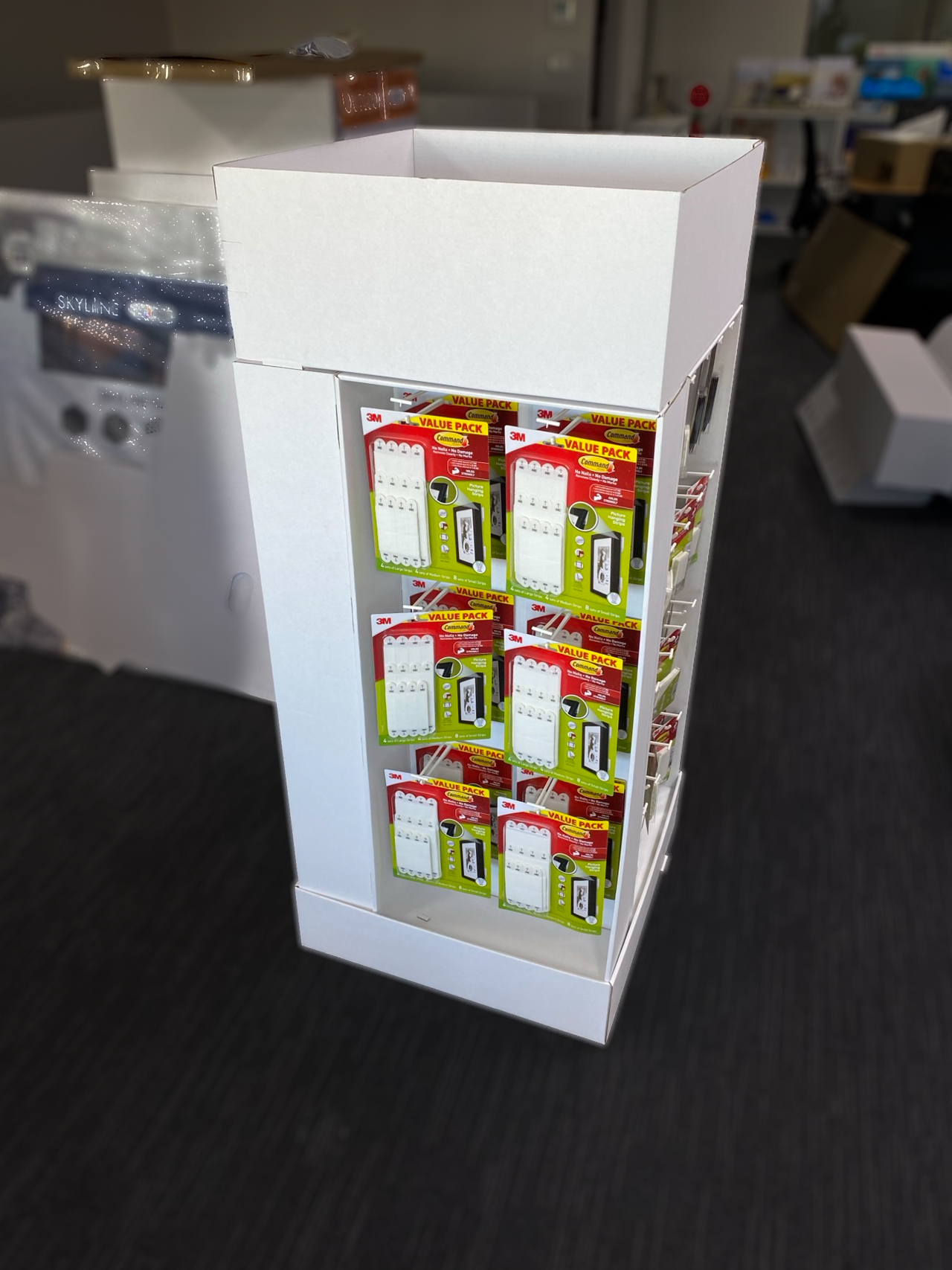 "We designed a four sided cardboard point of sale display unit for 3M to be rolled out onto shop floors of Officeworks stores in Australia"